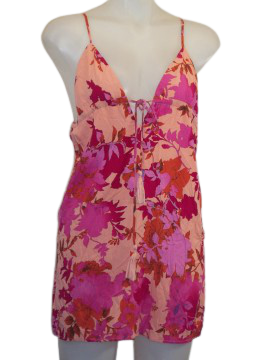 Ecru Lab pink/red floral pattern spaghetti strap tassel dress