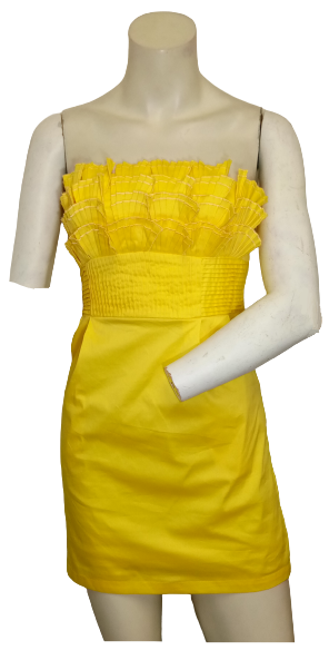 Minuet yellow ruffled strapless dress w/pleats