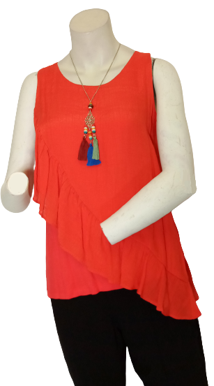 Red AGB asymmetrical ruffle tank top w/ necklace