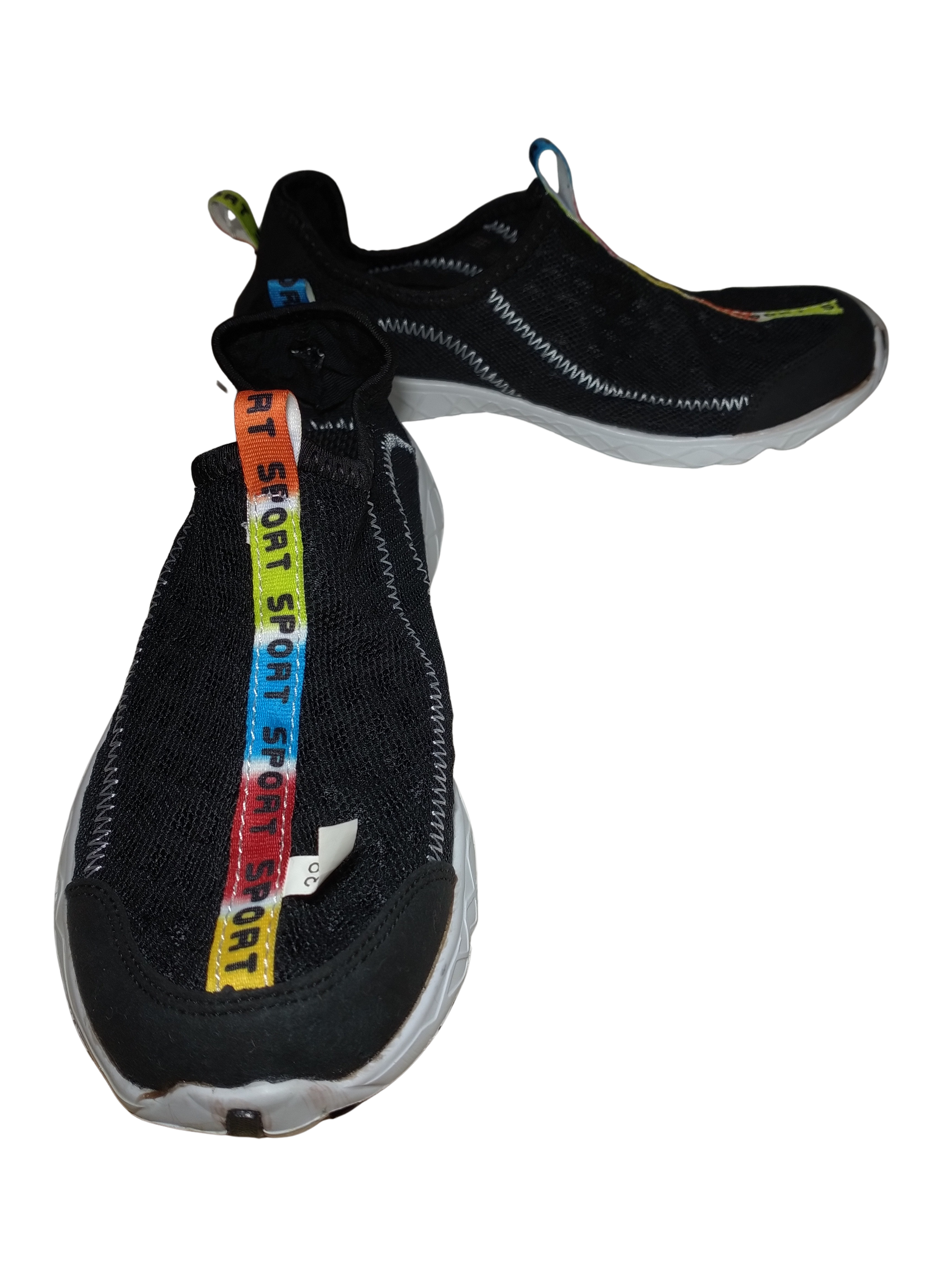 Sporty Style Meets Beach Fun: Black, Rainbow & White Watershoes!