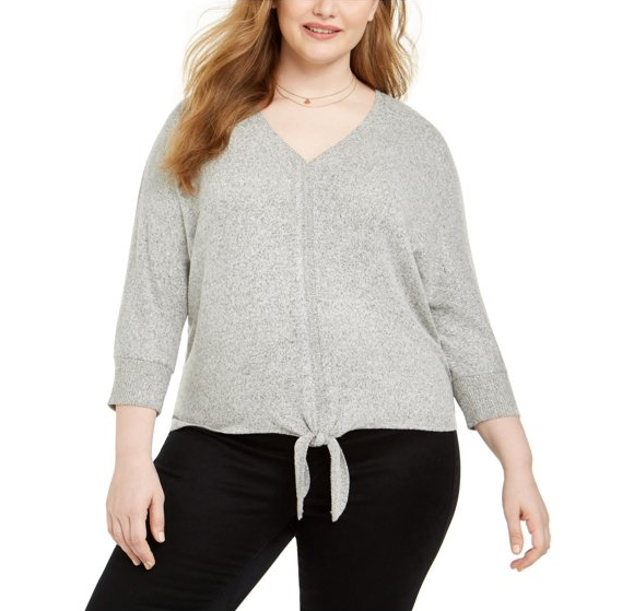 Order your Style & Co. Plus Size Tie-Hem Sweater in Grey White today and unlock a world of effortless chic and cozy comfort!