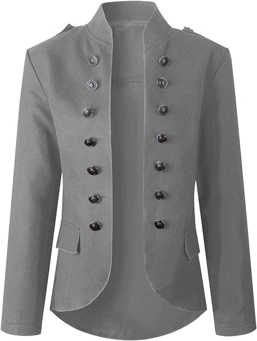 Shop now and experience the timeless style and sophistication of the Suvimuga Gray Button-Accent Blazer!