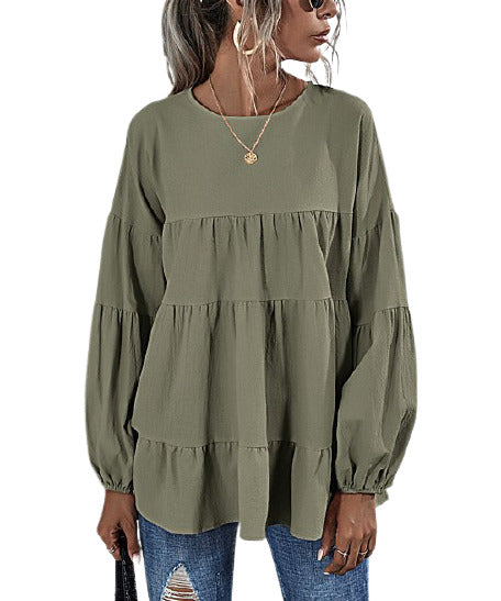 Army Green Tiered Ruffle Long-Sleeve Top size XL