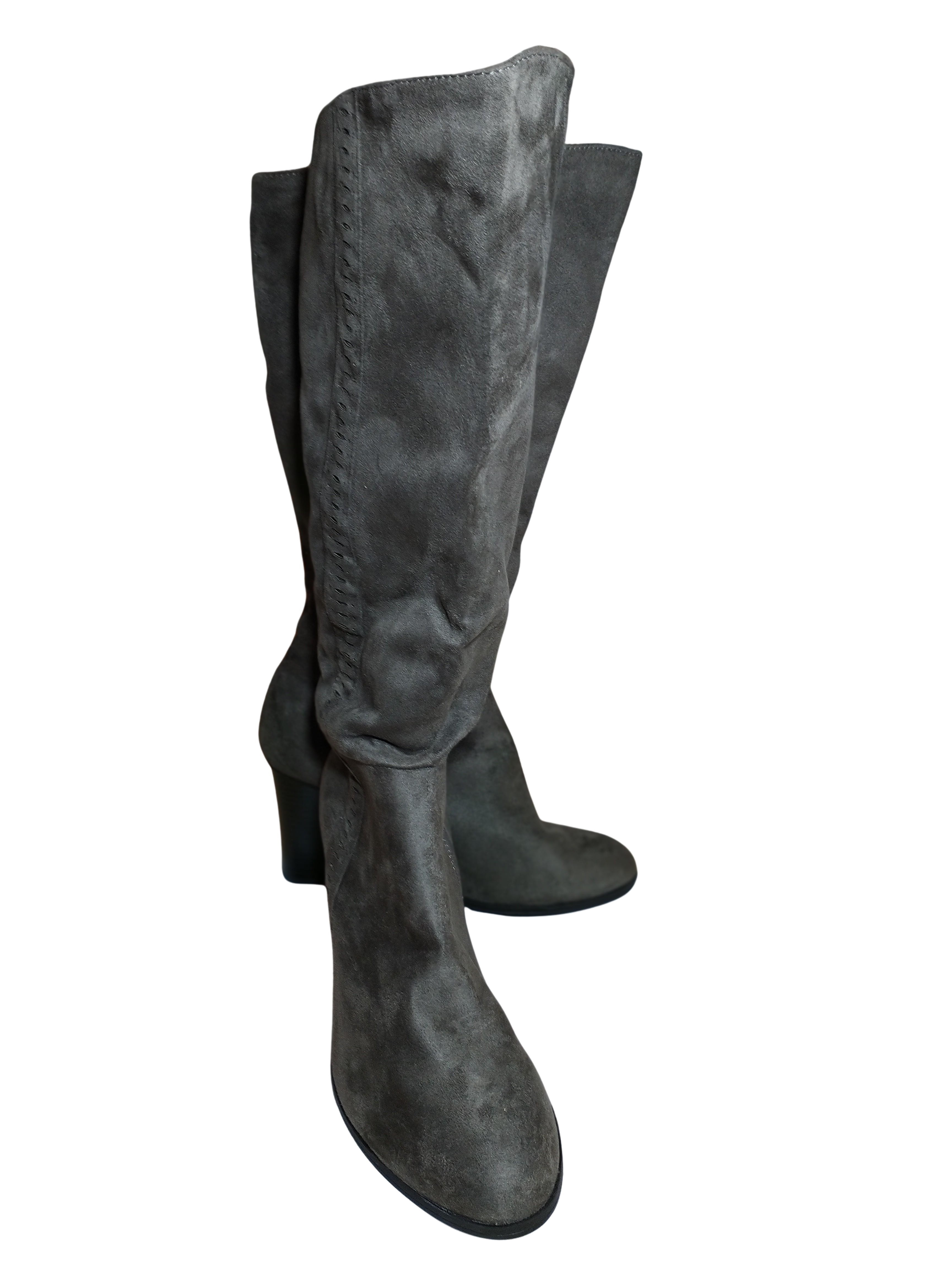 Chic and Versatile: These women's gray simply styled suede long boots are a wardrobe essential, adding sophistication to any outfit.