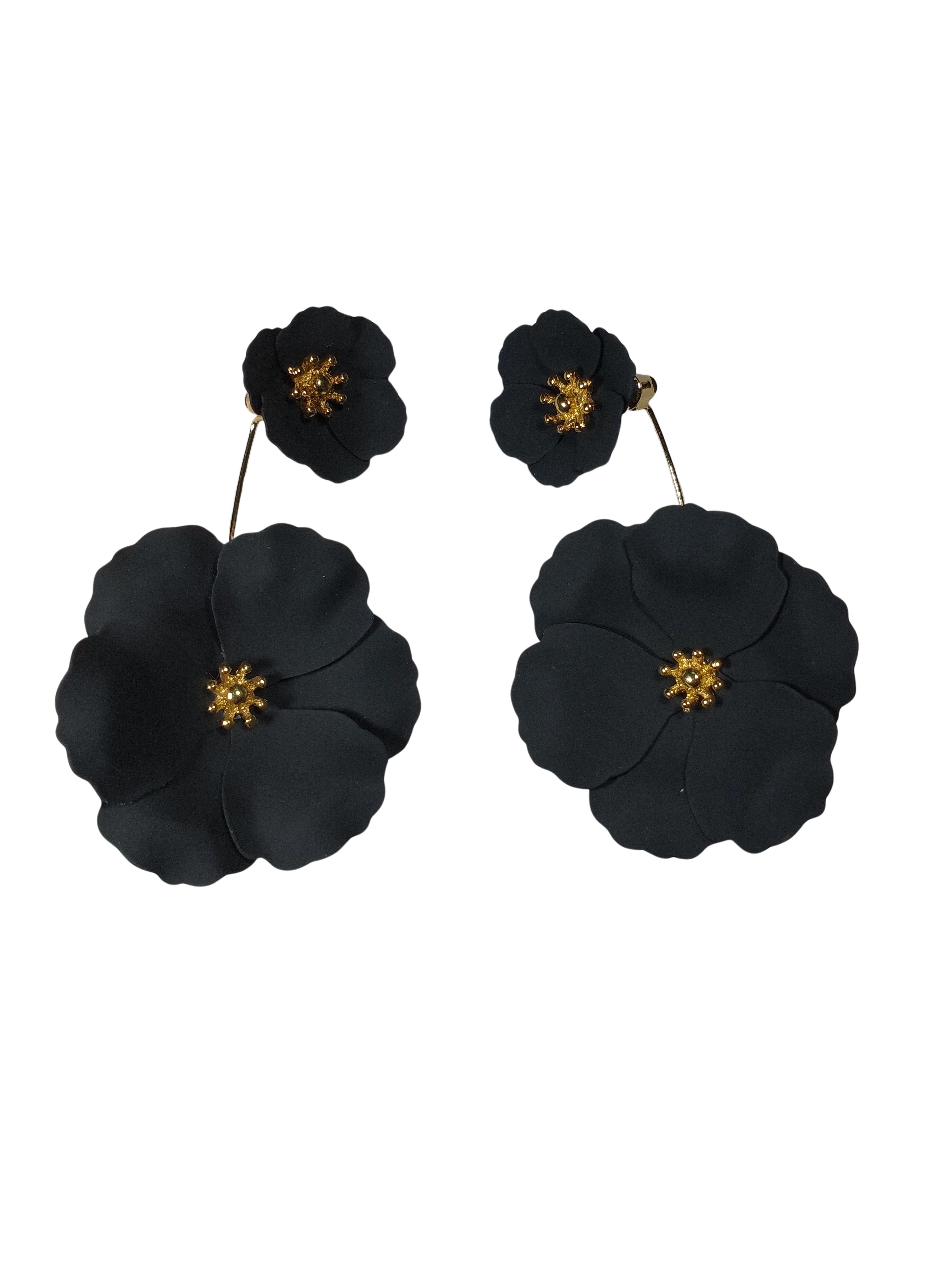 Turn heads with the Zenzii Black & Gold-Tone Flower Drop Earrings, a sculptural blend of matte petals and metallic shine. These earrings feature hand-painted floral elements and a lightweight drop silhouette, perfect for adding drama and elegance to any outfit—from brunch to black tie.