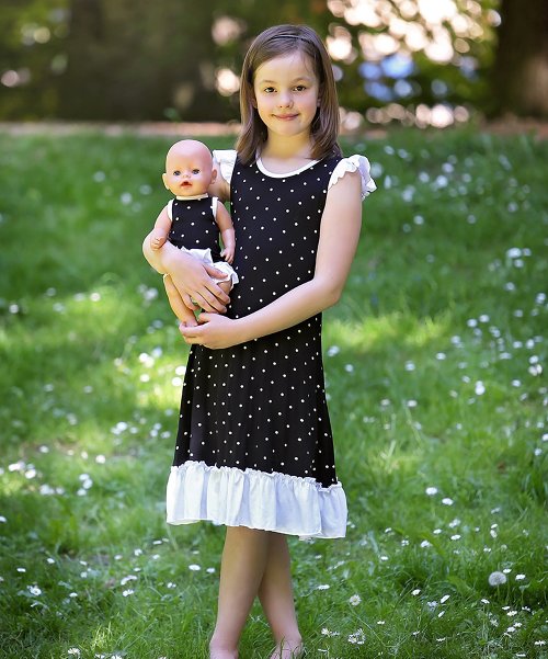 Black Polka Dot Sophia Angel-Sleeve Dress & Doll Dress