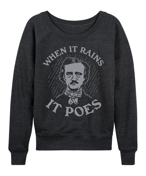 Heather Charcoal 'When It Rains It Poes' Slouchy Pullover