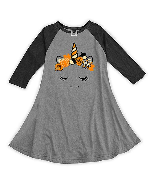 Heather Gray & Charcoal Thanksgiving-Crown Unicorn Raglan Dress